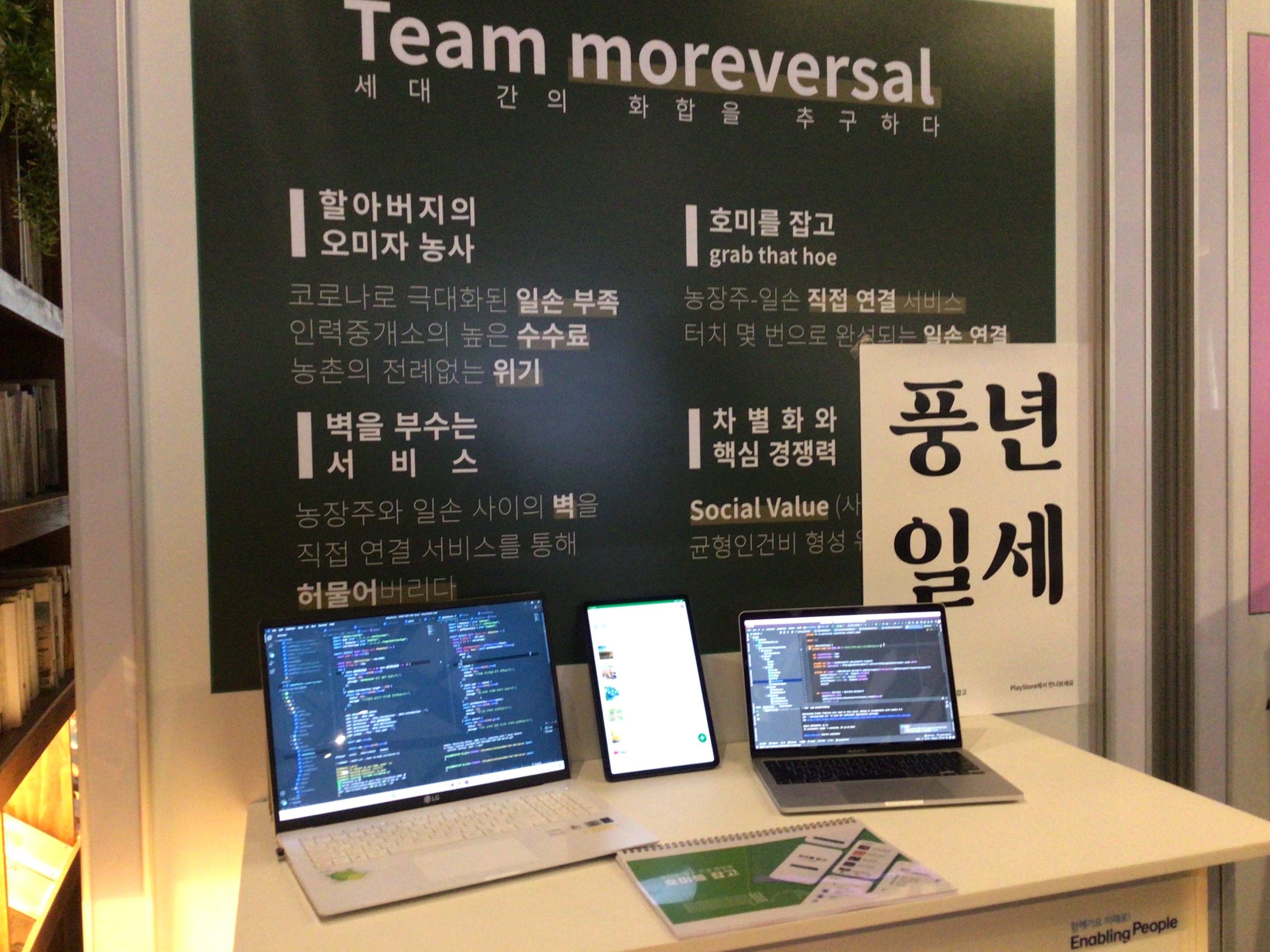 민재 팀원의 말대로, 1년동안 포기하지 않고 꾸준히 달려온 우리 팀이 자랑스럽고, 더욱 좋아진 팀워크에 많은 감정을 느꼈다. moreversal팀의 멋진 도약을 도모하며 호미를 잡고가 전세계의 농촌에 자리잡을 그날까지 열심히 달리고 싶다.