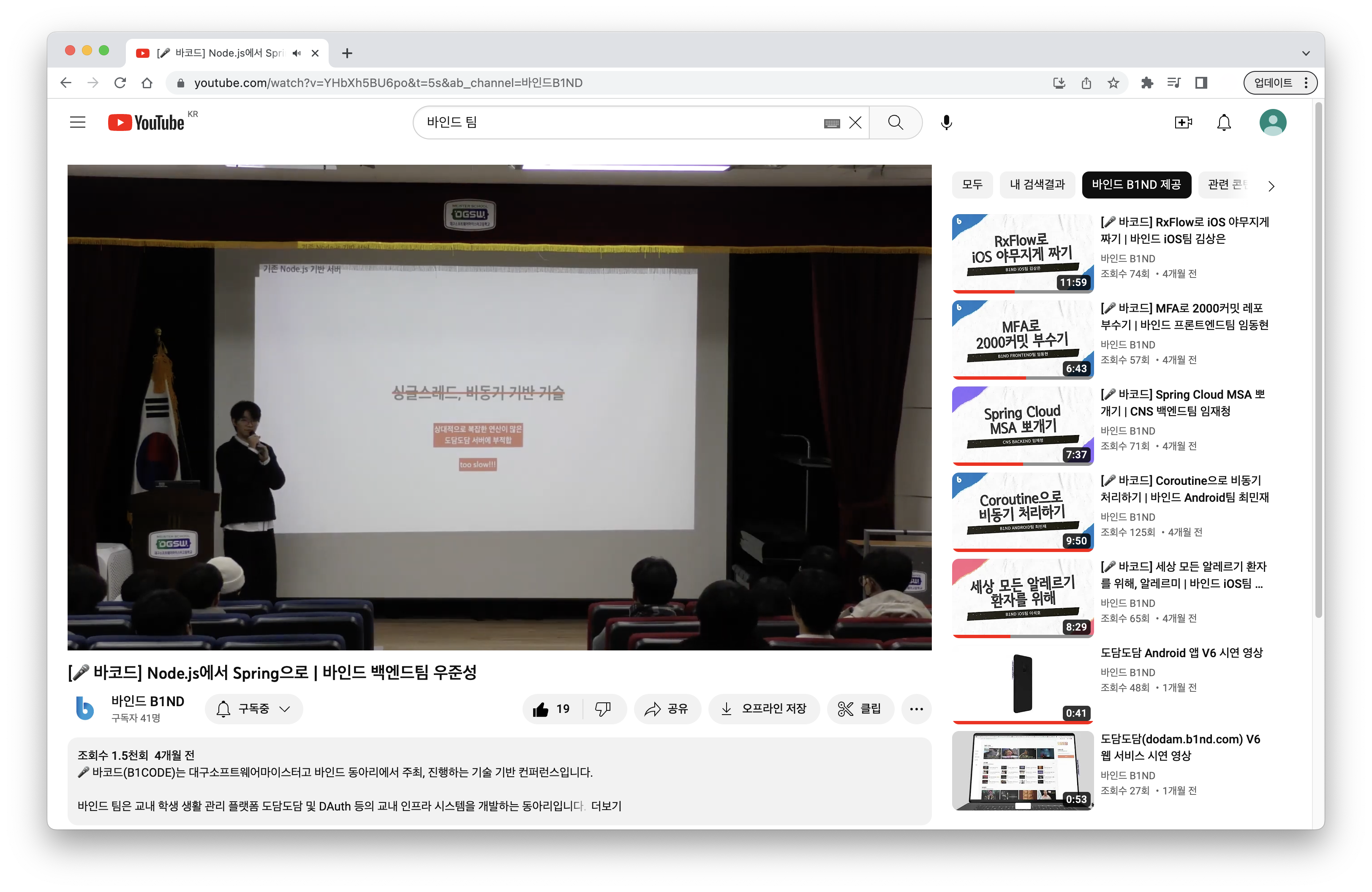 나도 이번 컨퍼런스 발표에 백엔드 세션을 진행했는데, 실제 도담도담 V6 서버에서 진행된 Node.js에서 Spring으로의 마이그레이션을 주제로 잡았다. 실제 발표 영상은 유튜브에 있으며, 동기 및 비동기, Spring 프레임워크의 장점 등을 설명하며, 바인드 백엔드 팀이 왜 Spring으로의 마이그레이션을 택했는지 발표했다. 그리고 성능 향상에 대한 얘기도 했는데, 돌아보면 캐싱 및 SQL 최적화 등의 작업을 수행하지 않고 단순 프레임워크 마이그레이션으로 속도 개선 및 성능 향상을 했다고 말한 게 철이 없었던 것 같다. (실제 속도 개선이 되긴 했지만, 내부적으로 왜 개선되었는지 자세하게 알지 못했다.)
