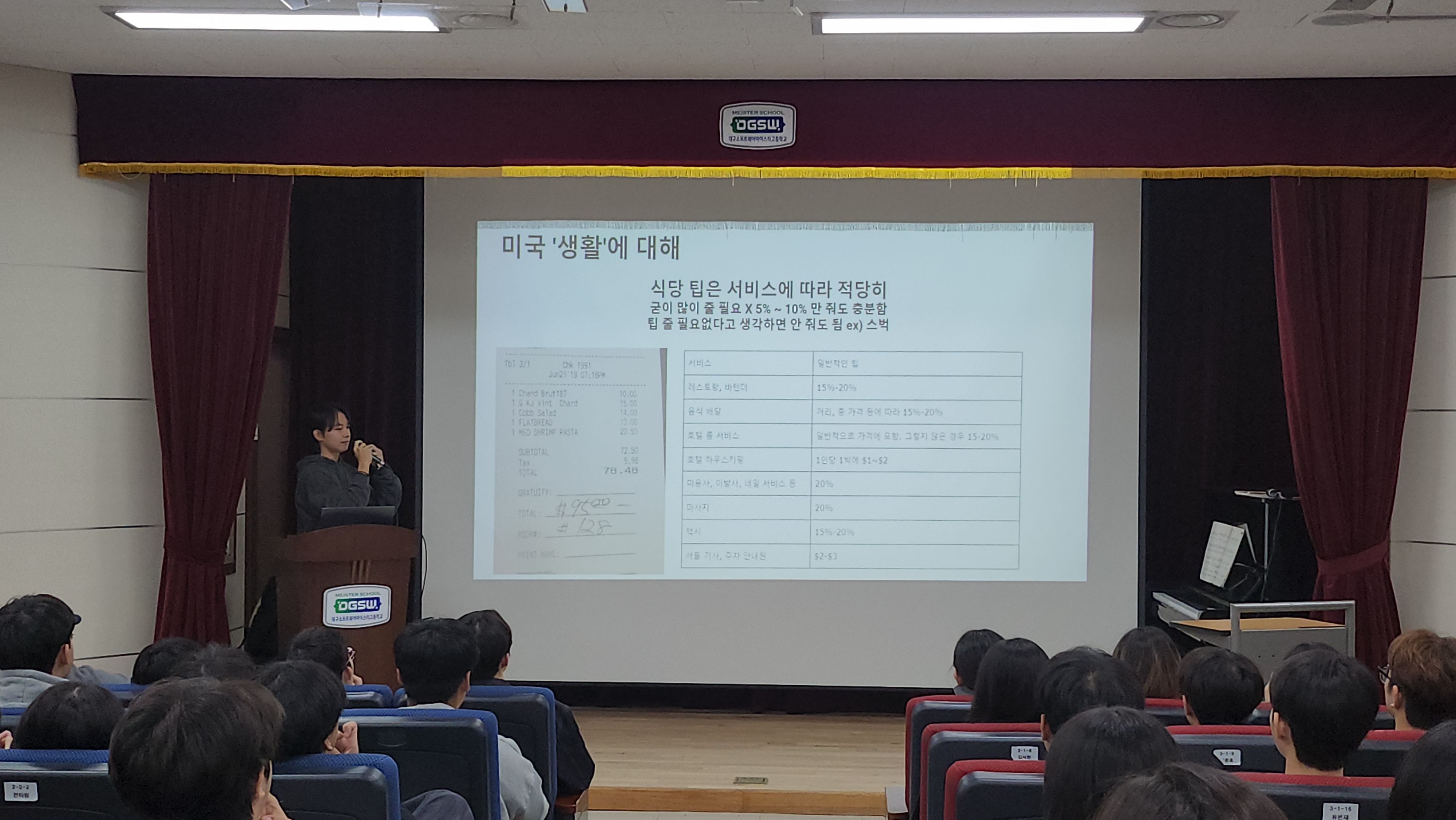학교로 복귀한 후에는 1,2학년 후배들을 대상으로 글로벌 성과보고 발표회를 진행했다. 회사별로 발표를 진행했는데, 같은 회사에서 인턴 생활을 했던 진영이가 공교롭게 그날 실습을 나가면서 나 혼자 발표를 진행했다. 정말 오랜만의 발표라서 많이 떨리기도 했지만, 후배들에게 내가 느낀 모든 것들을 기꺼이 전해주겠다는 마음을 가지고 잘 마무리했다.