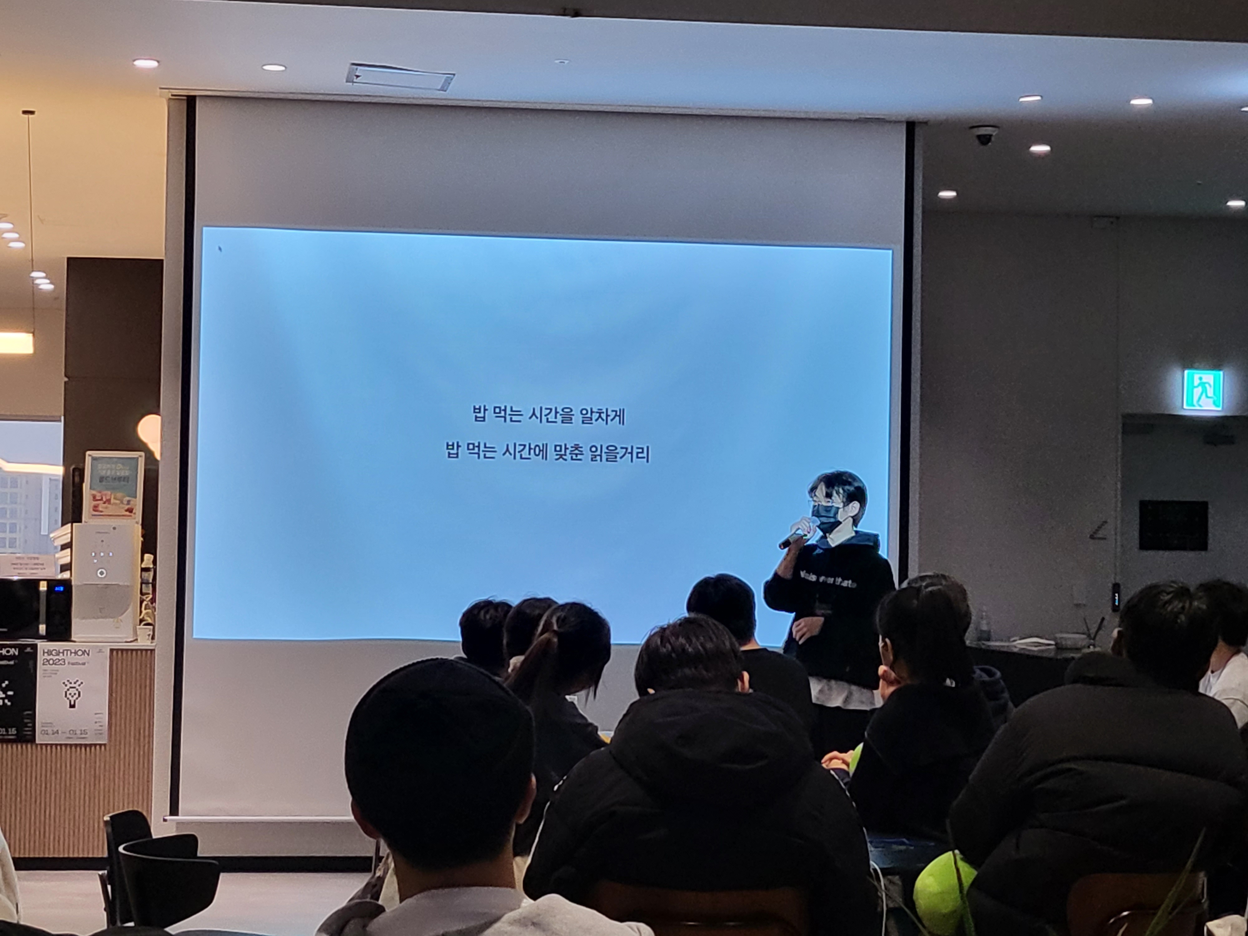 2022년에 참가하고 싶었지만 신청 기한을 놓쳤던 대회 중 하나가 하이톤이었다. 대회에 참가했던 친구들이 다른 소마고/소프트웨어계열 고등학교 학생들과 네트워킹을 맺는 것이 부러웠다. 그래서 2023년에는 까먹지 않고 참가 신청을 했다. 1월 14일부터 15일까지 무박 2일로 진행되었으며, 나는 백엔드 개발자로 참가했다. 현장에서 팀 빌딩이 진행되었기에 해커톤 진행 당일 밥 먹으면서 친해진 용진, 같은 학교 동아리 선배였던 해윤이 형, 미림마이스터고의 1학년 디자이너 한 분과 함께 팀을 결성했다.