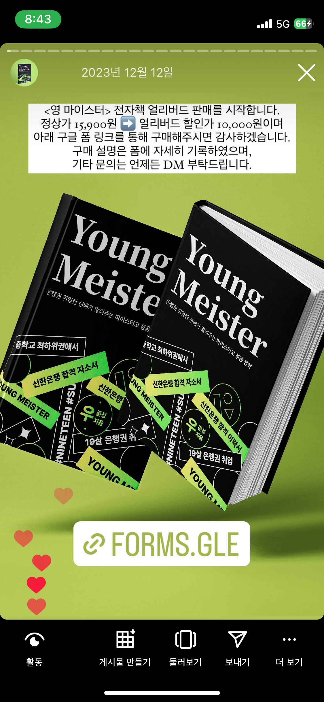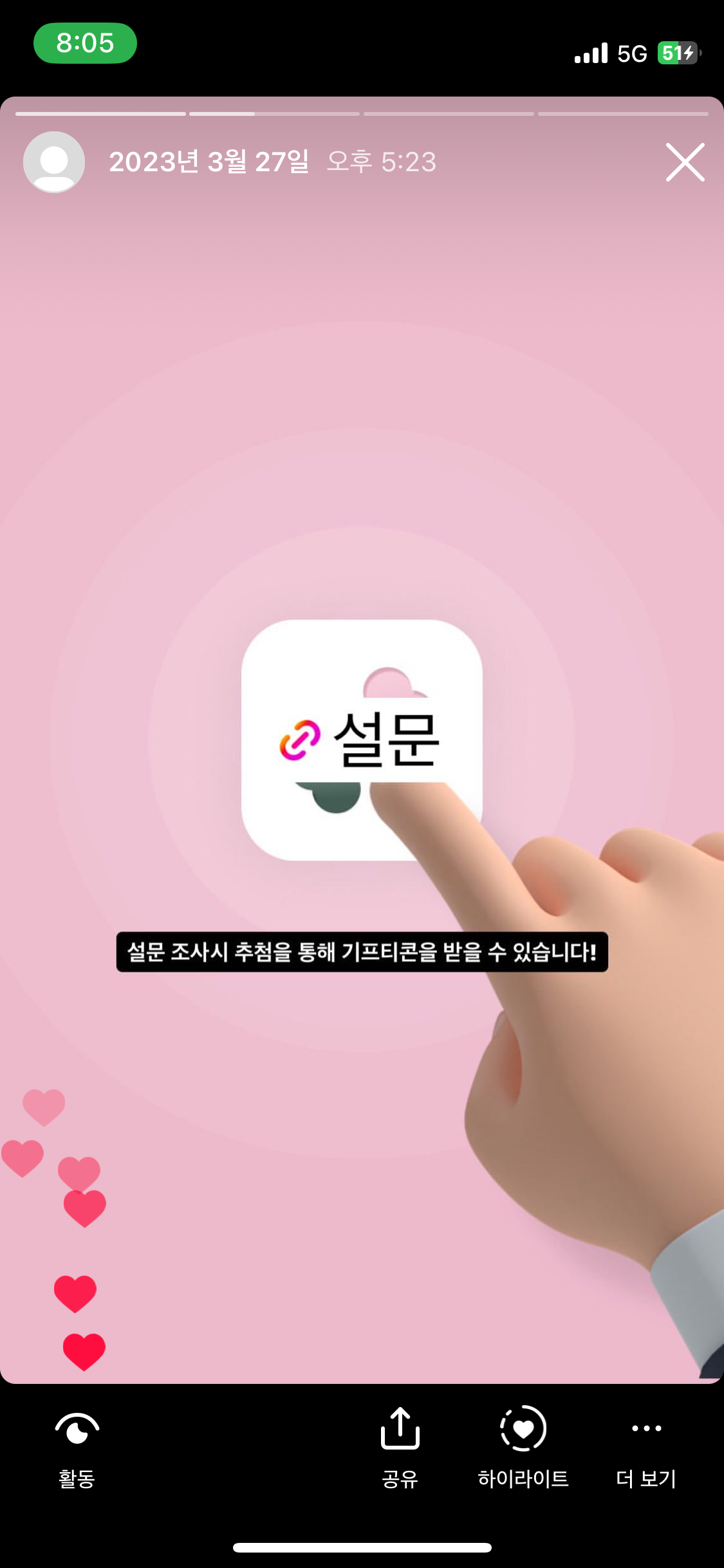 앱 링크와 설문조사 링크는 인스타그램 스토리를 활용해 적극 홍보했다. 다행히 나와 팀원들 주변에 도와주는 사람이 많았기에, 적은 마케팅 비용으로 많은 사람들에게 서비스가 닿았다.