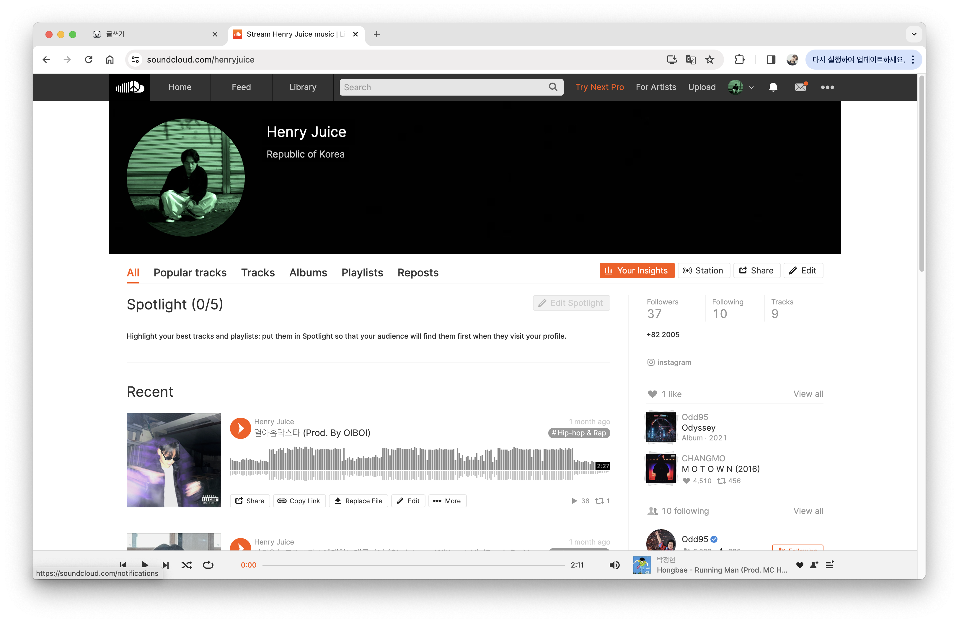 추가로, 곧 바쁜 일정이 끝나고 나면 랩 레슨과 발성/발음 개인 강습을 받고, 공유 작업실을 빌려 주말마다 작업에 열중할 예정이다! 무대에 올라가는 꿈을 이루는 그날까지 절대 포기하지 않고 싶은 취미이기에. 데모곡들은 사운드클라우드(https://soundcloud.com/henryjuice)에 업로드되어 있으니, 들어주시면 굉장히 감사하겠다.