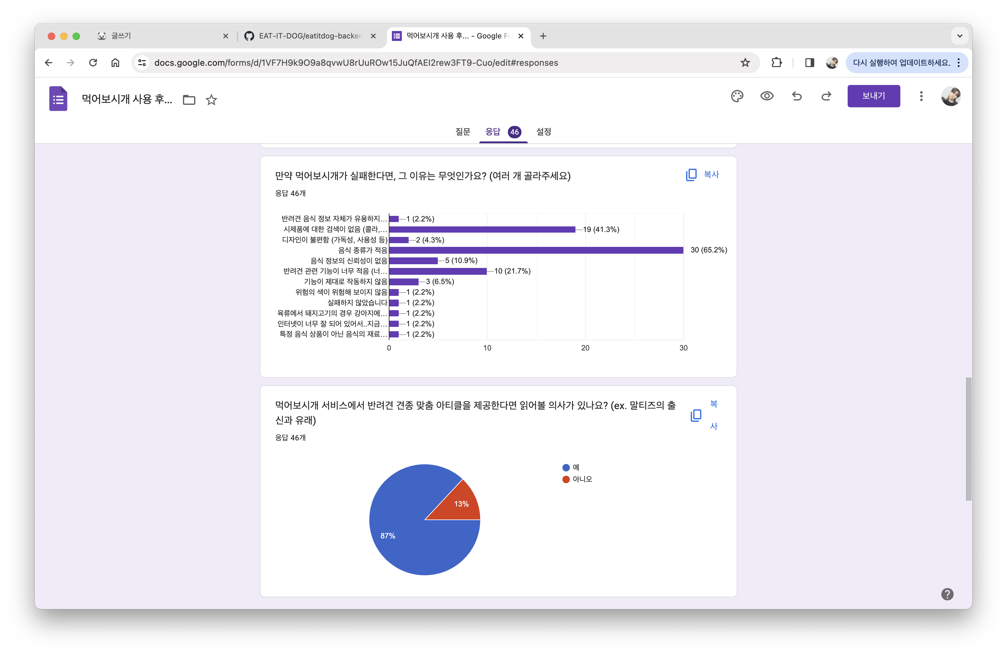 1학년부터 3학년까지, 어쩌면 내 고등학생 생활의 전부를 함께한 프로젝트가 '먹어보시개'이다. 1~2학년때는 아이디어 초본으로 대회에 나가 수상하는 것에 그쳤다면, 3학년이 되어서는 본격적으로 능력이 있는 구성원들을 중심으로 팀을 결성하고, 아이디어를 구체화하며 개발에 몰입했다. 아, 그래서 먹어보시개 프로젝트가 무엇이냐면, "특정 사람 음식을 강아지가 먹어도 되는지, 먹으면 위험한지 정보를 알려주는 서비스"이다. 해당 아이디어는 필자가 반려견을 키우며 생긴 불편함에서 착안한 아이디어이고, 자세한 도출 과정 및 아이디어 설명은 이 글을 참고해 주면 좋을 것 같다.